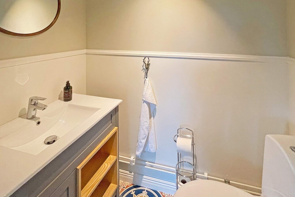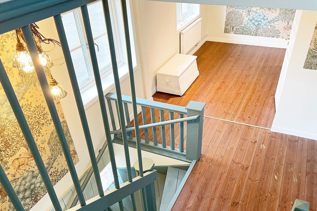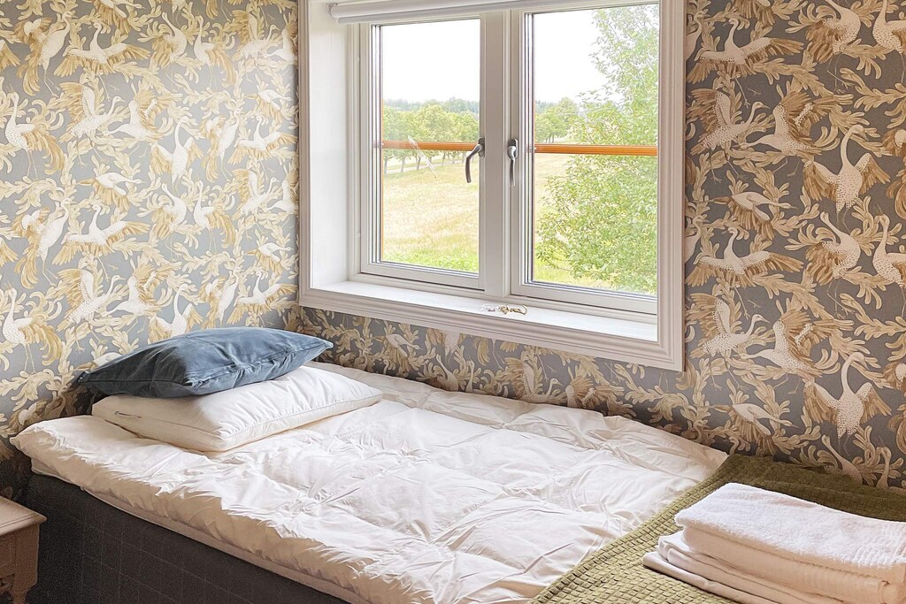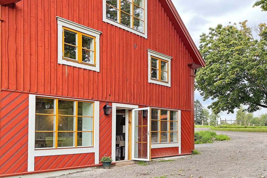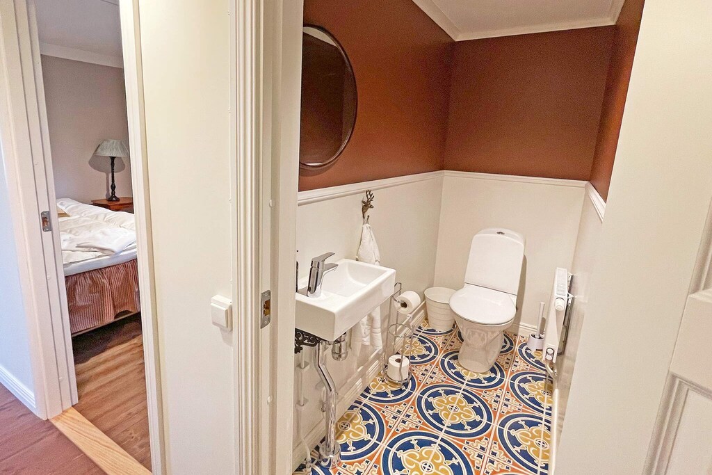 Willkommen bei Boskulla Corp de Logis! Hier bewohnen Sie ein komplett renoviertes Feriendomizil mit ca. 300 m² großer Wohnfläche, bei dessen Renovierung Komfort und Design im Vordergrund standen. Das Ferienhaus hat eine lange Geschichte als Teil des Boo Estate und diente einst als Fahrerwohnsitz. Auf der unteren Ebene steht Ihnen ein offener Raum mit einer gut ausgestatteten Küche mit kleiner Kücheninsel, einem angrenzenden Essbereich und einer gemütlichen Sitzecke zur Verfügung. Vorne am Eingang des Hauses gibt es zudem ein helles Duschbad, in dem bis zu drei Personen gleichzeitig duschen können. Daneben befindet sich eine separate Toilette. Die Etagen sind über eine schöne Treppe verbunden und in der mittleren Etage befindet sich der Schlafbereich des Hauses mit fünf separaten Schlafzimmern, von denen eines mit einem Doppelbett ausgestattet ist. Hier finden Sie auch vier separate Toilettenräume. Alle Nassbereiche im Haus sind von hoher Qualität. Im Obergeschoss liegt ein weiteres Schlafzimmer, mit Einzelbett, dazu ein gemütliches Familienzimmer mit bequemer Sitzgruppe und großem Panoramafenster mit Blick in den Park, der Boskulla Corp de Logis umgibt. Falls Sie Ihr Elektroauto aufladen müssen, ist dies an den dafür vorgesehenen Ladestationen möglich. Sie buchen und bezahlen vor Ort. Dieses geräumige Feriendomizil ist Teil des Anwesens Boo Fideikommiss, zu dem auch das Schloss Boo gehört. Das Grundstück liegt etwas mehr als 40 km südöstlich von Örebro und umfasst 15.000 Hektar. Hinzu kommen noch etwa 1.000 ha Wasserfläche. Es gibt hier gute Möglichkeiten für Naturerlebnisse, Waldspaziergänge und zum Angeln. Darüber hinaus werden in Boo im Herbst und Winter Treib- und Gruppenjagden veranstaltet. Auf dem Grundstück befinden sich viele schöne Kulturgebäude. Besuchen Sie gerne das beliebte Restaurant Boo Natur, wo die Speisekarte je nach Saison wechselt und sich an den verfügbaren Zutaten orientiert. In der Umgebung finden sich diverse Wanderwege durch malerische Umgebung und wunderschöne Naturschutzgebiete mit unterschiedlichen Besonderheiten. Dieses Anwesen ist ein perfekter Ausgangspunkt für Tagesausflüge nach Askersund und zur Entdeckung der wunderschönen Närke-Landschaft mit dem Fahrrad. Es stehen vor Ort mehrere Fahrradführer zur Auswahl (ohne Gewähr).