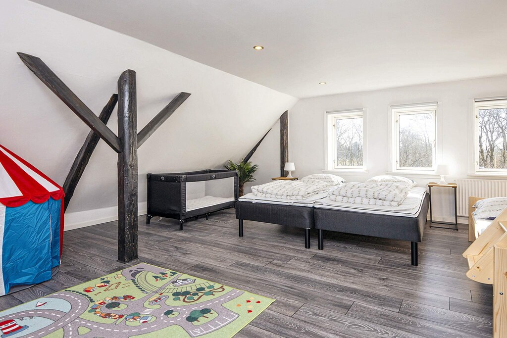 Am Kvie-See finden Sie dieses renovierte, 315 m² große Ferienhaus für 16 Personen mit Wildnisbad in einem großen, abgeschiedenen und eingezäunten Garten von 2000 m². Das Ferienhaus erstreckt sich über zwei Etagen. Im Erdgeschoss befinden sich eine große, gut ausgestattete Küche mit Kühlschrank, Gefrierschrank und Geschirrspüler, ein Fernsehzimmer mit Holzofen, großem Flachbildfernseher und PlayStation 5 sowie zwei Esszimmer mit Sitzgelegenheiten für 16 Personen. Es gibt zwei Badezimmer mit Duschen und Toiletten. Zugang zu einer großen, überdachten Terrasse mit Loungemöbeln und Wildnisbad sowie einer Sonnenterrasse mit verschiedenen Gartenmöbeln. Im ersten Stock befinden sich vier Schlafzimmer und ein großer, offener Gemeinschaftsbereich mit Möbeln und einem Billardtisch. Zwei Schlafzimmer verfügen über Kingsize-Doppelbetten (zwei zusammengeschobene Einzelbetten) und ein Etagenbett mit einem Doppelbett im unteren Bereich. Ein Schlafzimmer hat zwei Einzelbetten und ein Etagenbett mit einem Doppelbett im unteren Bereich. Das letzte Schlafzimmer verfügt über ein Kingsize-Doppelbett und ein Juniorbett. Es gibt auch eine Toilette mit Waschmaschine und Trockner. Da das Haus an ein Ferienzentrum angeschlossen ist, können Sie die zahlreichen Outdoor- und Indoor-Aktivitäten des Zentrums kostenlos nutzen, wie zum Beispiel den Multi-Golf-Park, Trampoline, Seilrutsche, Minigolf, große Spielplätze, Fußballkrocket, eine Baustelle, auf der Kinder und Eltern ohne Werkzeug, Schrauben oder Nägel bauen können, Tischtennis drinnen und draußen, Fußballplatz, Badmintonplatz, Volleyballplatz, Hockey, jede Menge LEGO und anderes Spielzeug usw. Außerdem gibt es einen Streichelzoo.A refundable deposit might be charged closer to your check-in date. The security deposit ensures a smooth stay and covers any additional services or consumption charges.This deposit covers utilities consumed during your stay and any additional services that may be taken.The final amount will be adjusted based on actual meter readings, actual usage of extra services, and any remaining balance will be refunded within 21 days after checkout.This deposit simply acts as a prepayment for charges that you would anyways pay for, ensuring a seamless stay and check-out experience.