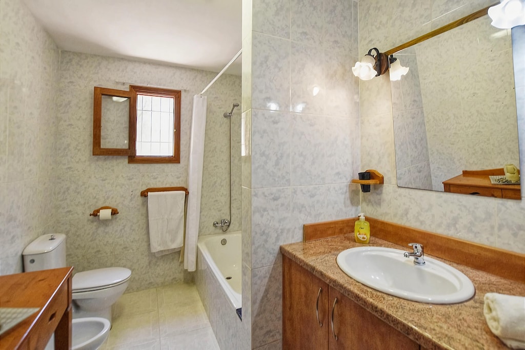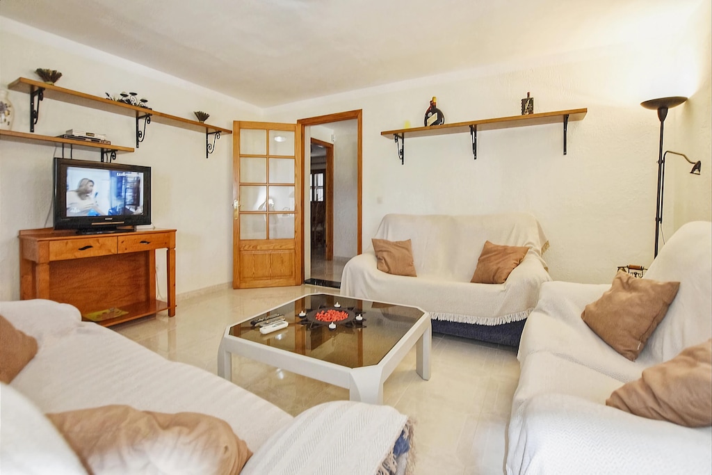 van ca. 130 m² en herbergt in totaal drie slaapkamers (allen met airconditioning) en twee badkamers en biedt daarmee