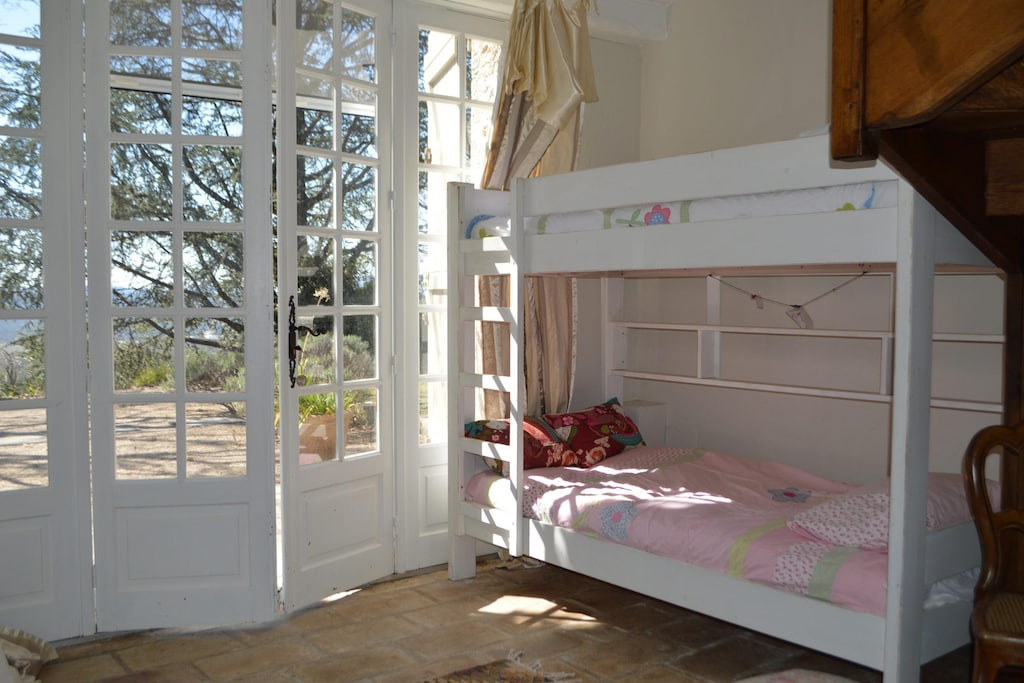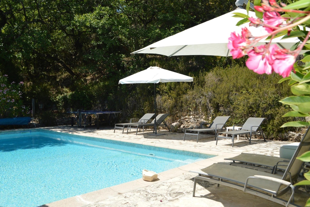 Het vakantiehuis beschikt over een prachtige Provençaalse tuin met recreatiemogelijkheden voor kinderen, waaronder een jeu de boulesbaan en een grasveld om te voetballen. Het zwembad kan worden verwarmd voor € 100 extra per week (niet in juli en augustus, wanneer het van nature warm is) en heeft een afdekking. Rondom het zwembad staan ligstoelen en parasols, terwijl het huis beschikt over een overdekt terras met een eettafel, elektrische plancha en koelkast. De tuin met meerdere niveaus vereist toezicht voor kleine kinderen. Geniet van prachtige zonsondergangen vanaf de zithoek onder de Mûriers. Eén slaapkamer heeft airconditioning, maar de dikke muren houden het huis over het algemeen koel, met een ventilator beschikbaar in het bijgebouw.