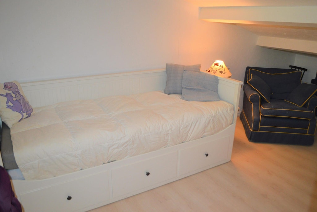 De woonkamer is comfortabel ingericht met een prachtige open haard en een grote bank. Er is een trap die leidt naar een ruime vide, waar u 2 werkplekken vindt voor een ruim bureau. Er is een eettafel die kan worden uitgeschoven en voldoende servies in verschillende stijlen. De keuken is voorzien van alle moderne gemakken met behoud van authentiek keukenmeubilair. De keuken is volledig uitgerust en biedt u de mogelijkheid om zelf smakelijke maaltijden te bereiden. De kamers in het hoofdgebouw zijn verbonden via een binnendeur, die ook kan worden afgesloten.