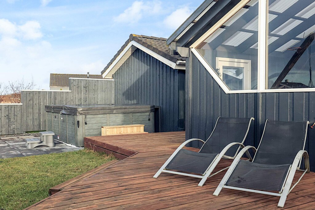 Ferienhaus mit persönlicher, hochwertiger Einrichtung, guter Ausstattung und sonniger Glasveranda. Es gibt zwei Badezimmer, von denen eines über einen Whirlpool und eine Sauna verfügt. Im Aktivitätsraum können Sie Tischtennis, Billard, Nintendo Wii, Shuffleboard und PS3 spielen sowie die Fitnessgeräte nutzen. Das Wohnzimmer ist offen mit der Küche verbunden, in der es u.a. einen amerikanischen Kühlschrank mit Eiswürfelbereiter gibt. Vom großen, hellen Wohnzimmer geht es hinaus auf die Terrasse und zum Rasengrundstück. Eines der Schlafzimmer verfügt über ein höhenverstellbares Bett, alle Schlafzimmer haben einen eigenen Fernseher. Außenküche mit Kühlschrank, Wasseranschluss und Gasflamme vorhanden. Für Kinder stehen Schaukel, Sandkasten und Spielhaus bereit. Außerdem gibt es einen Shelter, eine Feuerstelle und einen gemauerten Grill sowie einen Gas-Wok auf dem Grundstück. Freier Eintritt zum Badeland in Blokhus.A refundable deposit might be charged closer to your check-in date. The security deposit ensures a smooth stay and covers any additional services or consumption charges.This deposit covers utilities consumed during your stay and any additional services that may be taken.The final amount will be adjusted based on actual meter readings, actual usage of extra services, and any remaining balance will be refunded within 21 days after checkout.This deposit simply acts as a prepayment for charges that you would anyways pay for, ensuring a seamless stay and check-out experience.