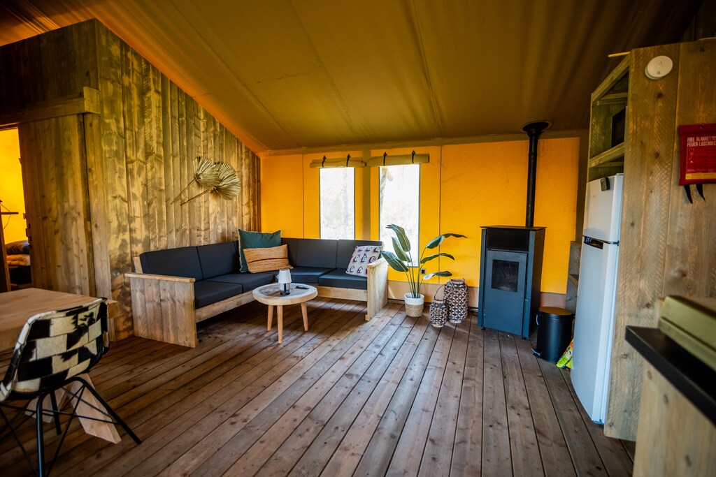 De Luxe Safaritent is een ideale safaritent voor het hele gezin, mede door de ruime woon- en slaapruimte. Geniet van alle comfort en kom helemaal tot rust op het grote overdekte terras. Het is een tent die glamping ademt. - Comfortabel, sfeervol en extra luxe - Geschikt voor grote gezinnen - Inclusief keuken en sanitair, ventilatiesysteem en klamboe - Ruime veranda van 15m2 - Pelletkachel - 3 slaapkamers Ontdek de charme van dit knusse vrijstaande vakantiehuis voor 6 personen, gelegen in de rustige omgeving van Vakantiepark Buitencentrum Hessenheem in Markelo, Overijssel. Met een woonoppervlakte van 45 m² is deze accommodatie ideaal voor gezinnen of kleine groepen die op zoek zijn naar een ontspannen verblijf in de natuur. De woning beschikt over een lichte woonkamer met een tv, kachel, radio en cd-speler, wat een warme en uitnodigende sfeer creëert. Stap de serre of veranda in om 's ochtends van uw kopje koffie te genieten of 's avonds tot rust te komen met uitzicht op het omliggende groen.