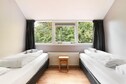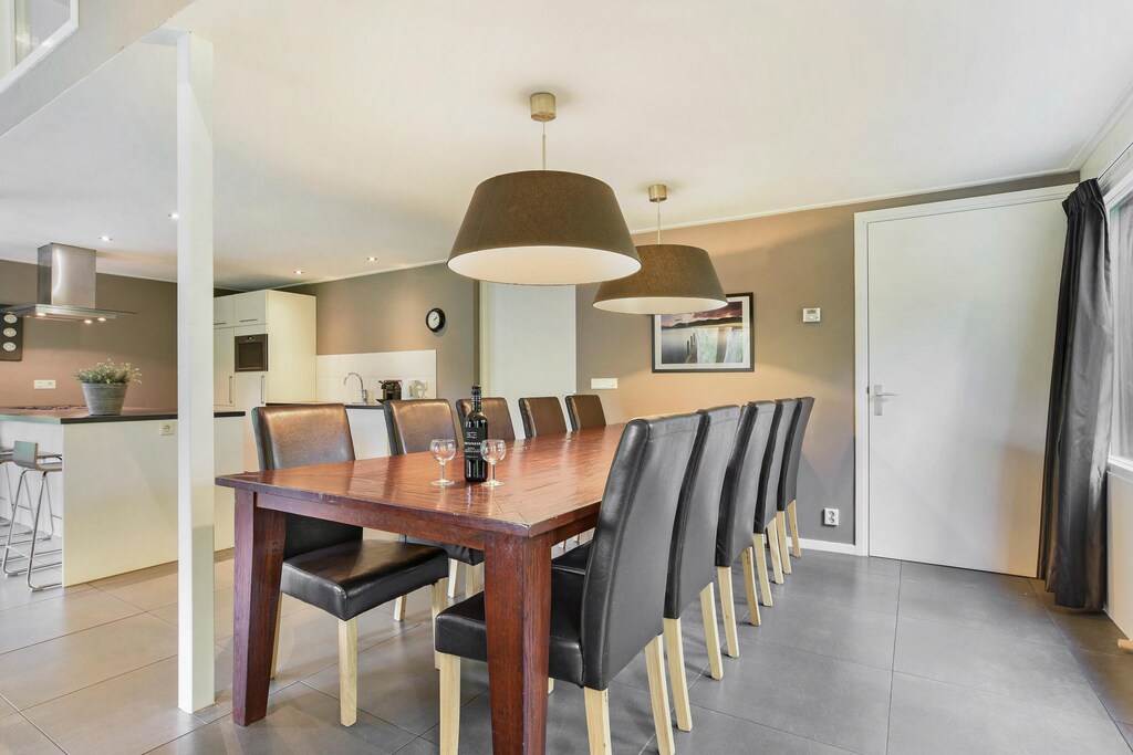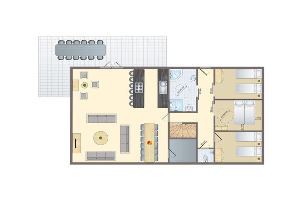 Het vakantiehuis staat op het bosrijke deel van het vakantiepark. Het beslaat twee etages en is comfortabel en compleet ingericht. Op de begane grond vindt u er een fijne woonkamer met een draaicirkel van 150 cm. met TV. De open keuken met kookeiland beschikt onder andere over een combimagnetron en afwasmachine. De eettafel is minimaal 70 cm. hoog en onderrijdbaar. Er zijn drie slaapkamers, elk met twee 1-pers. boxspringbedden, waarbij in één slaapkamer in een 2-pers. opstelling. In deze slaapkamer is minimaal 60 cm. ruimte aan één kant van het bed en er is een draaicirkel van minimaal 120 cm. Er is een aangepaste badkamer met een vlakke douche met een beugel, een douchezitje met armleuningen en een verhoogd toilet. Ook in de badkamer is de draaicirkel minimaal 120 cm. In de hal is er een apart toilet. Een inpandige berging maakt het geheel compleet. Op de eerst verdieping zijn er drie 2-pers. slaapkamers met elk twee 1-pers. boxspringbedden. Er zijn tevens twee badkamers, beide met douche. Op de overloop vindt u er een apart toilet.
