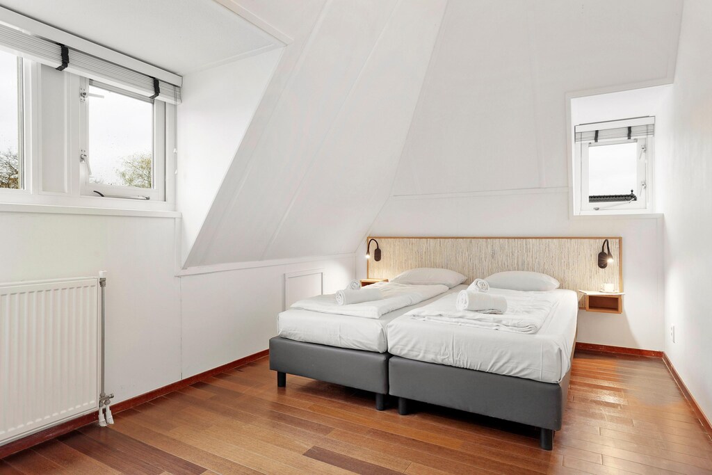 Het vakantiehuis staat op het waterrijke deel van het vakantiepark, is comfortabel en compleet ingericht en beslaat twee etages. Op de begane grond is er een woonkamer met TV en een open keuken met onder andere een magnetron en afwasmachine. In de hal is er een apart toilet. Een berging met wasmachine en -droger maakt het geheel compleet. Op de eerste etage vindt u er twee slaapkamers, elk met twee 1-pers. boxspringbedden, al dan niet in een 2-pers. opstelling. De badkamer beschikt over een douche. Naast de trap naar de eerste etage, zijn er enkele traptreden in het vakantiehuis. Een kinderbed, -stoel en traphekje zijn standaard aanwezig.