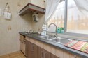 Binnen is alles gelijkvloers voor gemak en comfort. De woonkamer is voorzien van airconditioning, een tv en een open haard, terwijl de aparte keuken volledig is uitgerust om zelf te koken. Drie slaapkamers – twee met een tweepersoonsbed en één met twee eenpersoonsbedden – zorgen voor rustgevende nachten, en extra uitklapbedden bieden flexibiliteit voor grotere groepen. Een complete badkamer met douche en bad maakt de inrichting compleet, met handige extra's zoals een kinderbedje en kinderstoel voor kleine reizigers.