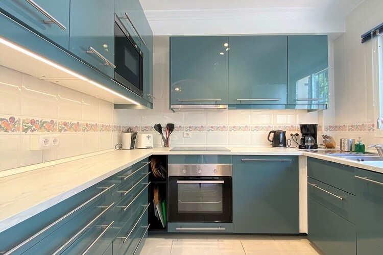 De aparte keuken is onlangs gerenoveerd en goed uitgerust met een inductiekookplaat, oven, magnetron, koel-/vriescombinatie, vaatwasser en essentiële kleine apparaten zoals een koffiezetapparaat en een broodrooster. Een gastentoilet bevindt zich op de begane grond, terwijl op de bovenverdieping een moderne badkamer met een douche en een wasmachine met ingebouwde droger is gevestigd.