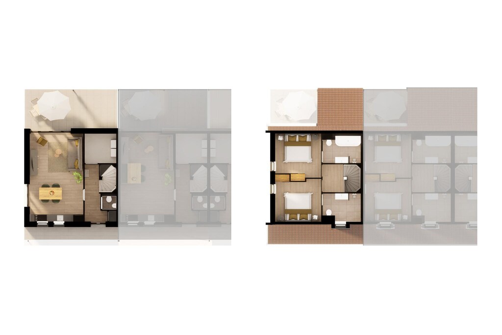 Het vakantiehuis, gelegen aan het water dicht bij het hoofdgebouw met al haar faciliteiten, is comfortabel en compleet ingericht en beslaat twee etages. Op de begane grond vindt u er een fijne woonkamer met smart-TV met streamingfunctie. In de moderne keuken vindt u er onder andere een combi-oven, afwasmachine en wijnkoelkast. In de hal is er een apart toilet. Boven beschikt u over twee slaapkamers met elk twee 1-pers. boxspringbedden, al dan niet in een 2-pers. opstelling. Één van de slaapkamers heeft een smart-TV met streamingfunctie. Tevens is er bij beide slaapkamers een badkamer ensuite met douche en toilet. In één van de badkamers is een ligbad aanwezig, om heerlijk te ontspannen.