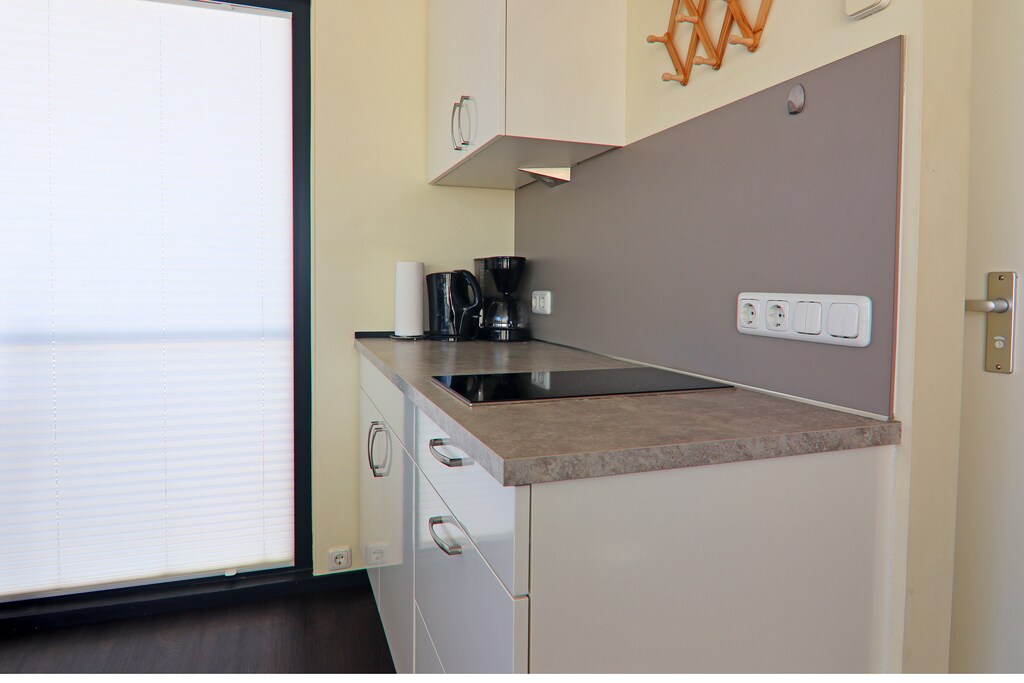 Kookplaat (keramisch, 2 kookplaten), Waterkoker, Broodrooster, Koffiezetapparaat, Magnetron, Afwasmachine, Koelkast