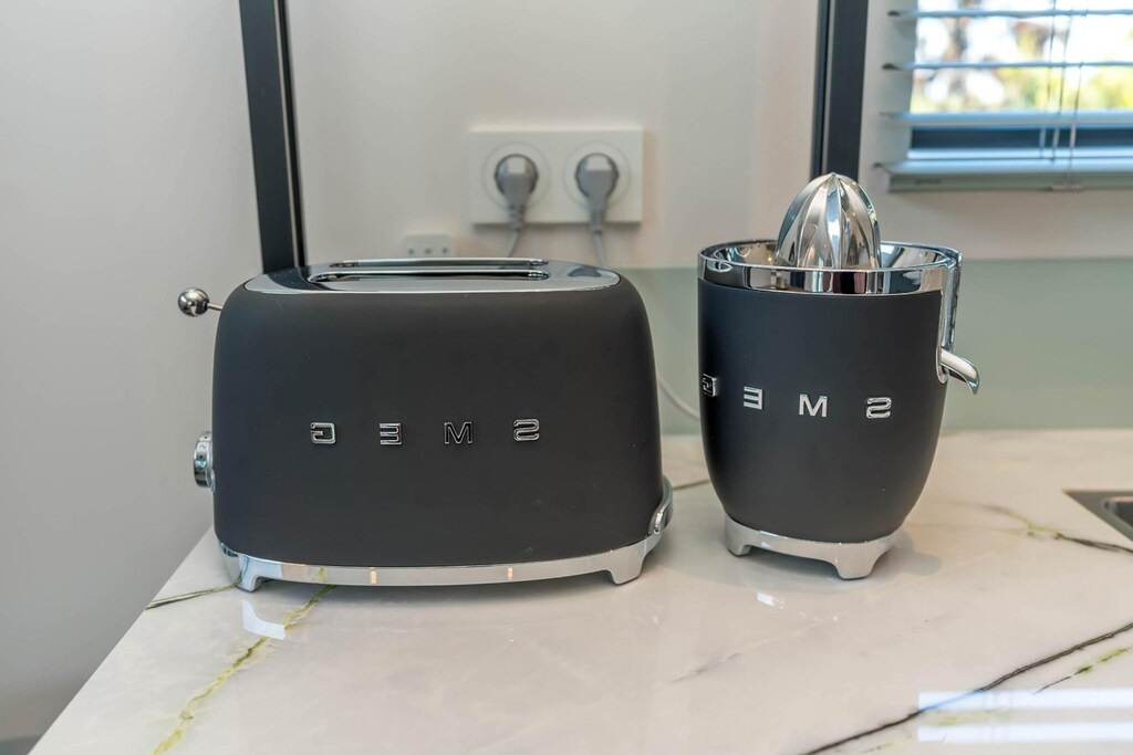 Kookplaat (inductie), Waterkoker, Broodrooster, Koffiezetapparaat, Combimagnetron, Afwasmachine, Koel-/vriescombinatie, Citruspers
