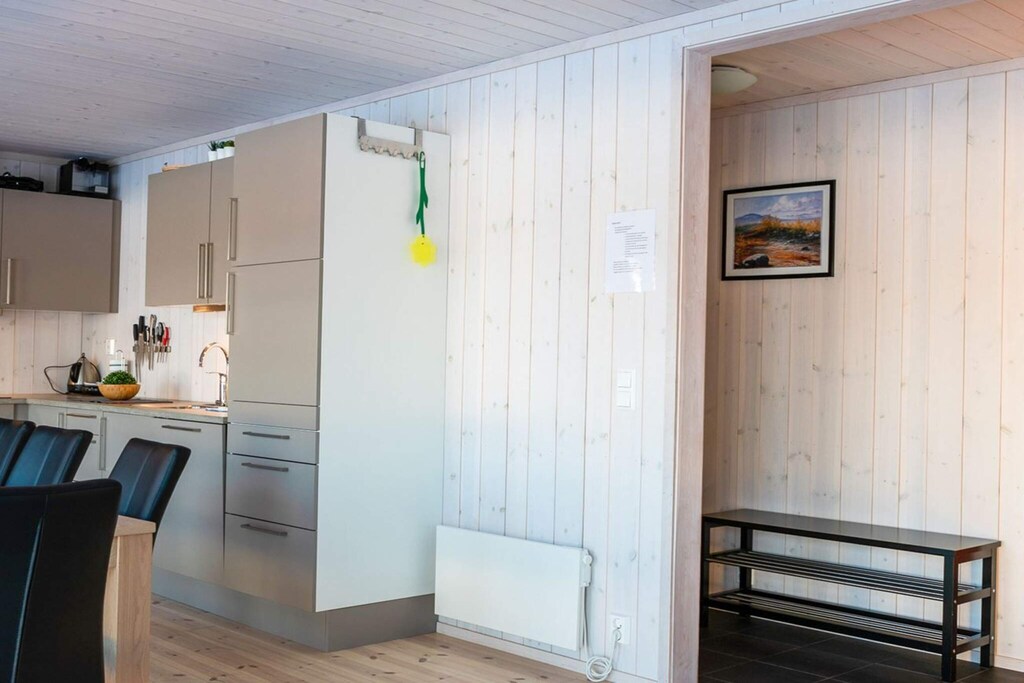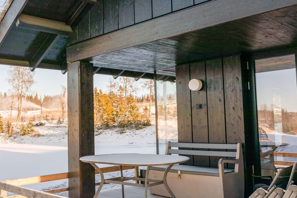 Attraktives, modern eingerichtetes Ferienhaus mit wohnlichem Ambiente. Eine wunderbare Unterkunft für einen Familienurlaub in den Bergen erwartet Sie hier! Wanderterrain und Gebirge liegen quasi direkt vor der Haustür. Genießen Sie den Ausblick in die Natur durch die vielen bodentiefen Fenster des Hauses! Innen offener, geräumiger Küchen-/Wohnbereich für das Familienleben, ausgestattet mit Kamin für kühlere Abende sowie ansprechender Sitz- und Essecke. Die Küchenausstattung ist zeitgemäß und umfasst u.a. Abzugshaube, Gefrierfach, Herd, Geschirrspüler, Mikrowelle und Kaffeemaschine. Im Haus stehen auch vier Schlafzimmer zur Auswahl: eines mit Doppelbett, zwei Schlafzimmer mit sogenanntem Familienbett mit 150 cm breiter Liegefläche unten und schmalerer Koje darüber, zudem viertes Schlafzimmer mit normalem Etagenbett für zwei Personen. Vom Ferienhausgebiet aus erreicht man per Auto schnell das Ortszentrum von Øyer mit seinen Lebensmittelgeschäften und Gaststätten. Mit dem Mountainbike kann man am nahen Berg Hafjell spannende Fahrten unternehmen. Zu den weiteren Ausflugszielen in Reichweite zählen z.B. der Familienpark Hunderfossen, Lilleputthammer und Lekeland. Das Gebirge bietet großartige Wandermöglichkeiten, eine Gondelbahn bringt Sie hinauf in die Höhe.