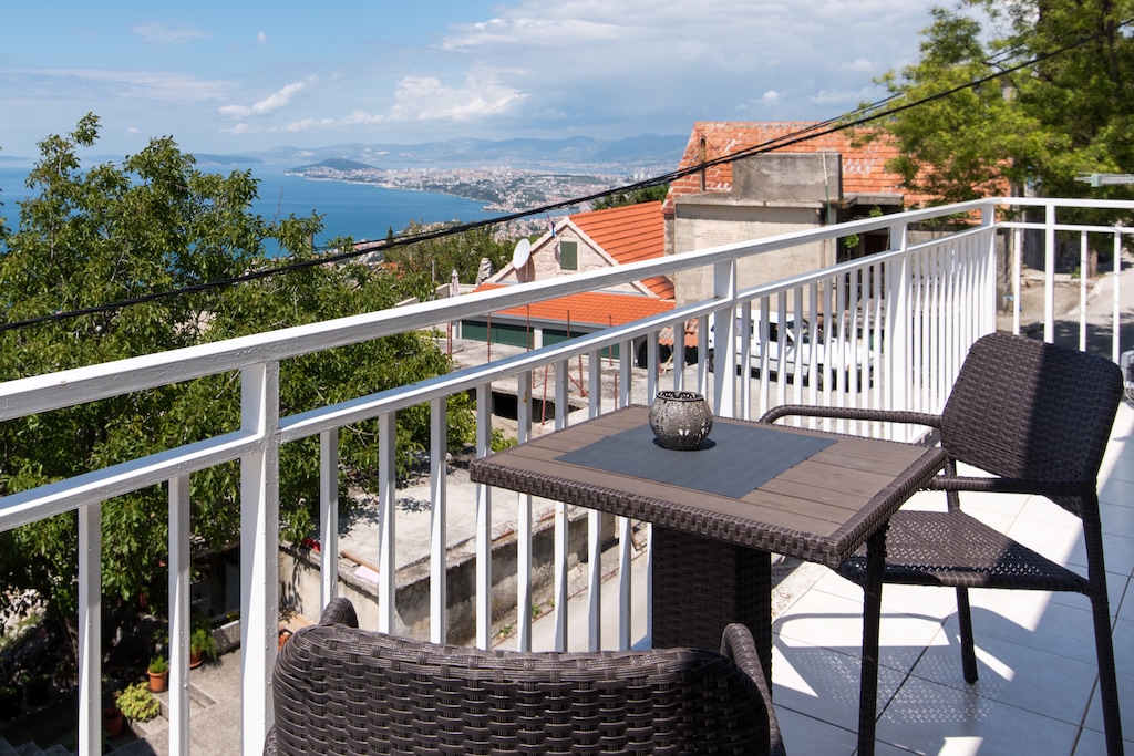 Het huis is ruim, groot en schoon. Vanaf het balkon op de tweede etage heb je een prachtig uitzicht over de zee en over Split. Wij, zeven jongens van 19, vonden het echter jammer dat er op de begane grond geen banken aanwezig waren. Als je met z'n allen lekker wilde zitten, kon dat alleen op houten stoelen rondom de tafel. Op de eerste en tweede etage zijn slaapbanken aanwezig waar je op kan zitten, maar dat is toch minder praktisch omdat er ook mensen op slapen. Wat ook genoemd moet worden is het feit dat het huis via een 3 km lange, slingerende en erg steile weg te bereiken is. Over die afstand ga je 150-200 meter omhoog. De ene auto vindt zo'n klim wat minder leuk dan de andere.