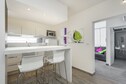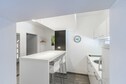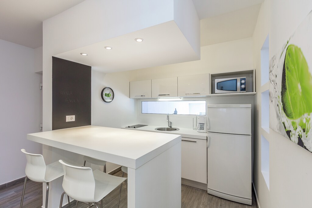 Fornuis (elektrisch, 2 kookplaten), Koffiezetapparaat, Magnetron, Afwasmachine, Koel-/vriescombinatie