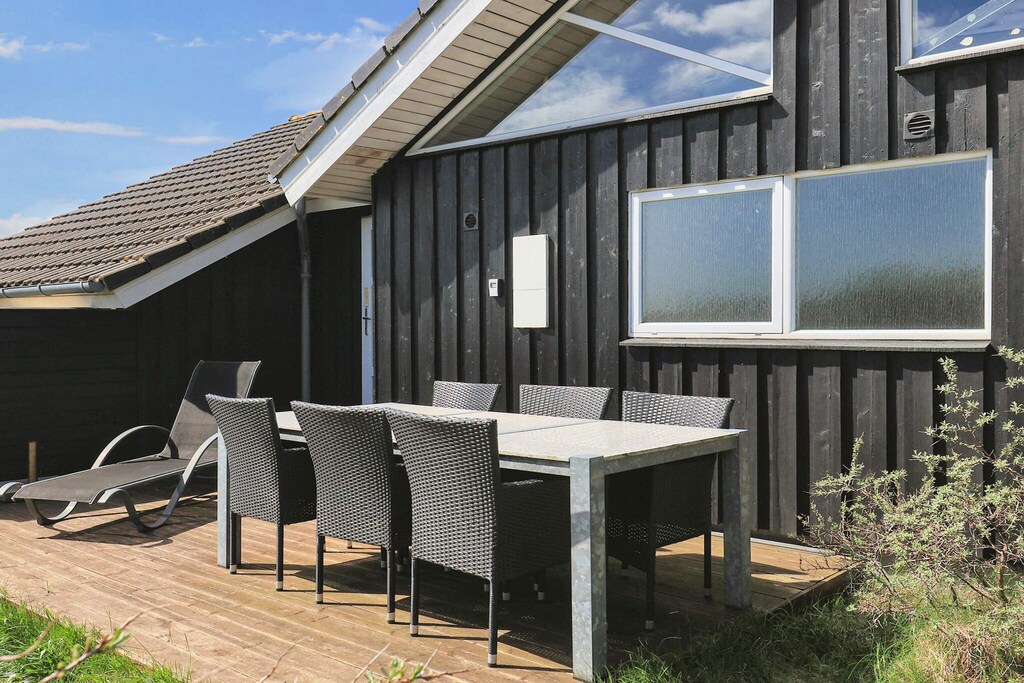 Dieses geräumige Ferienhaus in der Nähe von Rødhus Strand bietet einen privaten Pool, einen Whirlpool und eine Sauna und vereint Spaß und Entspannung in einem einzigen Haus. Auf einem wunderschönen Naturgrundstück, nur fünf Gehminuten von einem der breiten Nordseestrände entfernt, ist das Haus der perfekte Ausgangspunkt für einen unvergesslichen Küstenurlaub. Das Haus ist durchdacht gestaltet und verfügt über große Fenster, die die offene Küche, den Ess- und Wohnbereich mit Licht durchfluten. Die gefliesten Böden verfügen über eine Fußbodenheizung für zusätzlichen Komfort. Das Wohnzimmer ist mit einem Fernseher und einem gemütlichen Holzofen ausgestattet. Zwei Badezimmer mit Duschen bieten Platz für Familien oder Gruppen. Von der Küche aus bietet eine große Glastür einen Blick auf den Poolbereich, sodass Sie Ihre Kinder im Auge behalten oder die entspannende Wasserlandschaft genießen können. Das Anwesen bietet eine Vielzahl von Outdoor-Aktivitäten mit viel Platz für Spiel und Sport. Für die kleinen Gäste gibt es einen Sandkasten, während die große Terrasse Sonne und Schatten bietet und fast immer ein geschütztes Plätzchen bietet. Für Sommerabende steht ein Grill zur Verfügung, und ein Teil der Terrasse ist überdacht, sodass Sie auch bei schlechtem Wetter im Freien speisen können. Ein besonderes Highlight dieses Hauses ist die gemütliche Grillhütte im Garten, in der auch bei kühlem oder regnerischem Wetter Mahlzeiten zubereitet und genossen werden können. Zur Ausstattung gehört außerdem eine Ladestation für Elektrofahrzeuge. Mit seiner luxuriösen Ausstattung, den großzügigen Wohnbereichen und der Nähe zum Strand ist dieses Ferienhaus ideal für Familien oder Gruppen, die Entspannung, Aktivität und Komfort kombinieren möchten. Die Vermietung an Jugendgruppen ist nicht gestattet.A refundable deposit might be charged closer to your check-in date. The security deposit ensures a smooth stay and covers any additional services or consumption charges.This deposit covers utilities consumed during your stay and any additional services that may be taken.The final amount will be adjusted based on actual meter readings, actual usage of extra services, and any remaining balance will be refunded within 21 days after checkout.This deposit simply acts as a prepayment for charges that you would anyways pay for, ensuring a seamless stay and check-out experience.