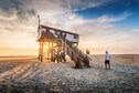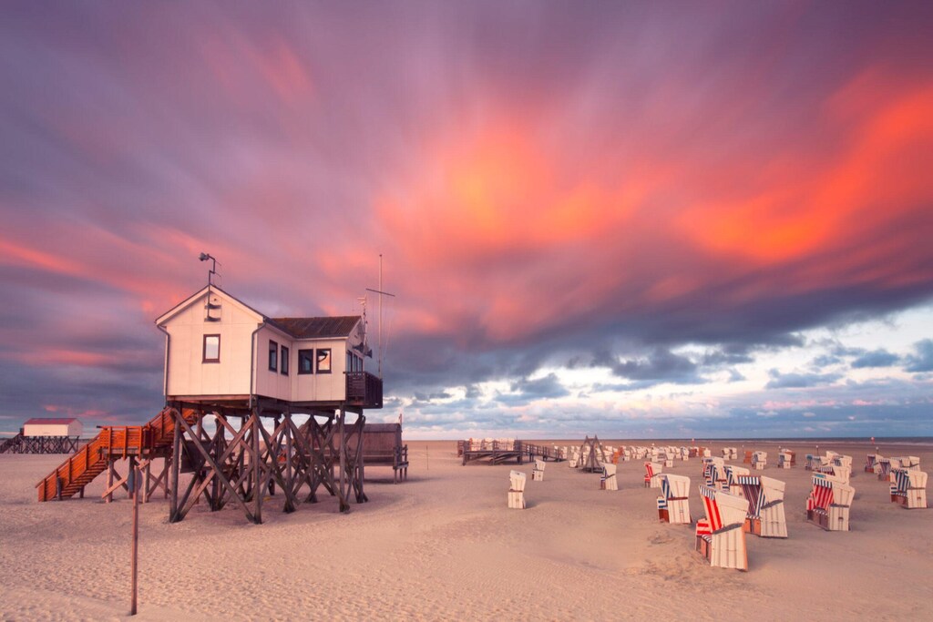 Rijhuis in het kuuroord St. Peter-Ording in de wijk Böhl. Maak lange wandelingen in het kuurbos, dat in de wijk Ording ligt. De unieke pier, de boulevard, waarop de drukte kan worden waargenomen en het gevarieerde recreatie- en avonturenbad met saunagedeelte kenmerken de bijzondere flair van de plaats. Slecht is het winkelparadijs St. Peter-Ordings en ook restaurants en bars nodigen uit tot verpozen.