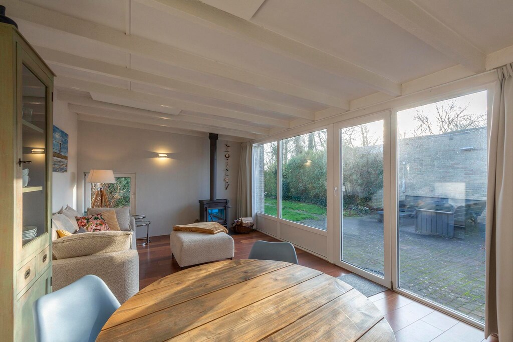 De grote tuin, met veel groen, heeft een heerlijk terras met een leuke houten tuinset. Achter in de tuin staat een schuur waar u uw fietsen kunt stallen. Wilt u uw hond meenemen? U kunt hier max. 2 honden welkom zijn!