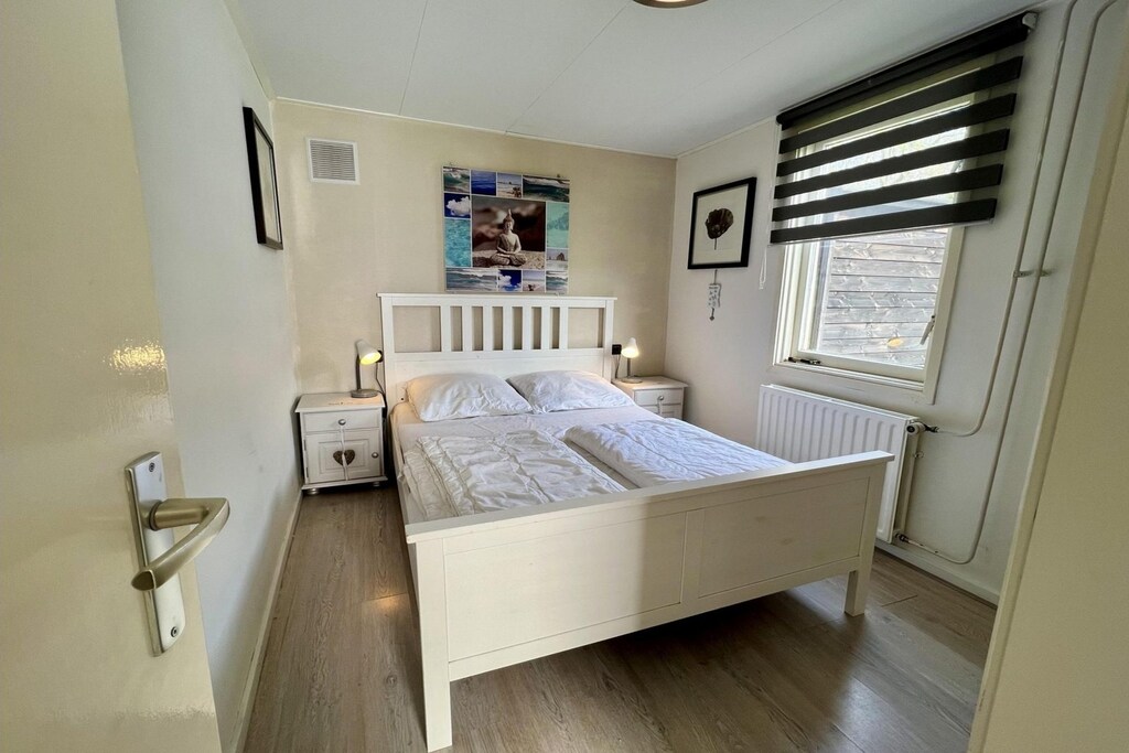 De bungalow biedt comfortabel plaats aan maximaal vier gasten met twee slaapkamers. De hoofdslaapkamer heeft een tweepersoonsbed en twee kledingkasten, terwijl de tweede slaapkamer twee eenpersoonsbedden en een kleine kledingkast heeft. De badkamer heeft een douche, wastafel en toilet. Buiten is het gezellige terras een heerlijke plek om te ontspannen. Er is een tuintafel met vier stoelen aanwezig en een uitschuifbaar scherm biedt een comfortabele buitenruimte, zelfs op koelere dagen. De tuin is niet omheind, waardoor u vrij uitzicht heeft op het grote speelveld en de speeltoestellen. Ideaal om de kinderen te zien spelen.