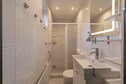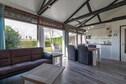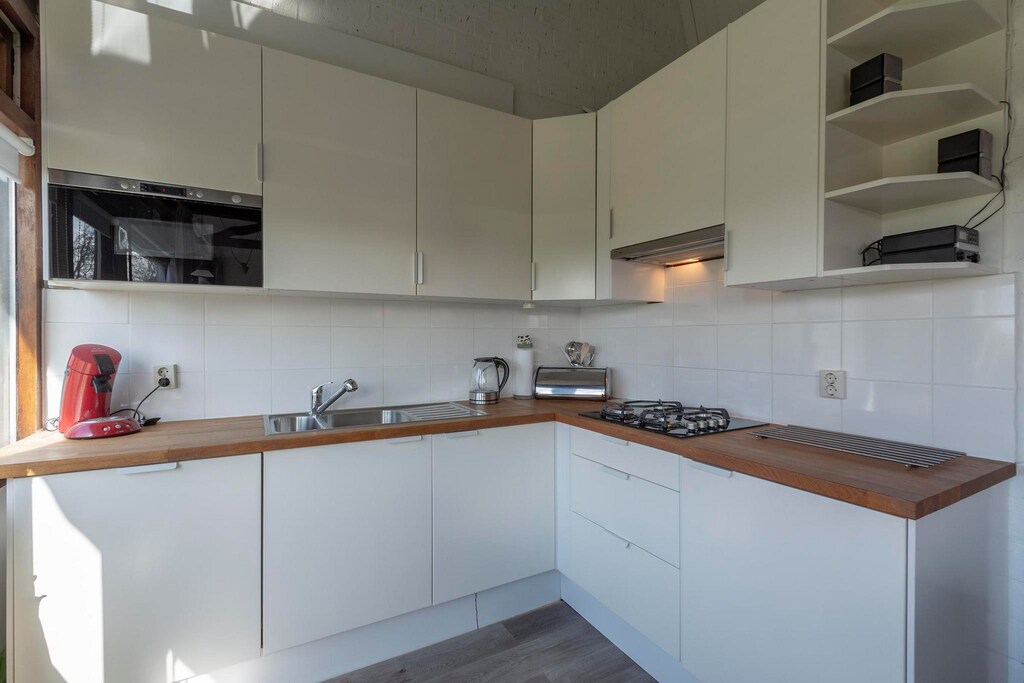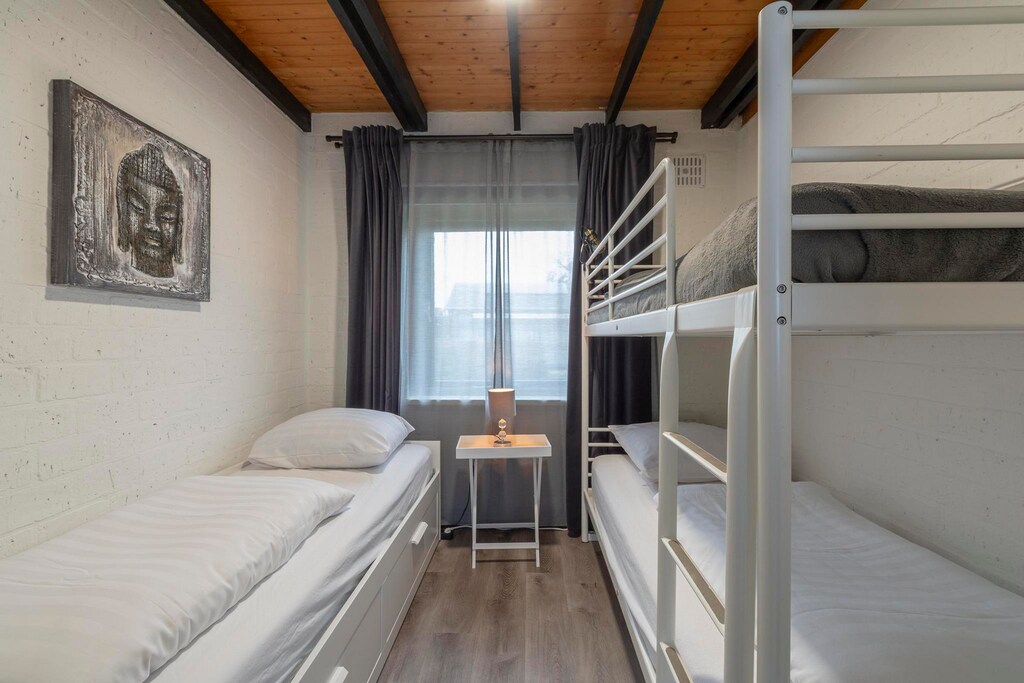 Binnen geeft de ruime woonkamer via grote schuifdeuren toegang tot de tuin, waardoor er een naadloze binnen-buitenervaring ontstaat. De open keuken is volledig uitgerust met een gasfornuis, heteluchtoven, magnetron, vaatwasser en zowel filter- als Senseo-koffieapparaten. De hoofdslaapkamer beschikt over een comfortabel tweepersoonsbed, terwijl de tweede slaapkamer slaapplaatsen biedt aan drie personen met een stapelbed en een eenpersoonsbed – ideaal voor kinderen. De badkamer is licht en modern, met een douche, toilet en wastafel.