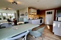 Er is een volledig gerenoveerde badkamer met inloopdouche en wastafel met spiegel. Het toilet is apart. Woonkamer en keuken: De ruime woonkamer, met een driezitsbank, fauteuil en rieten stoel, heeft veel lichtinval dankzij zonwerend glas aan de zuidzijde. Er ligt een pvc-vloer. Er is ook een nieuwe wasmachine beschikbaar voor gasten. Voor koffieliefhebbers is er keuze uit een filterkoffiezetapparaat en een Nespresso-apparaat.
