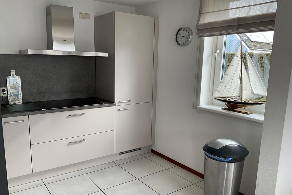 De tuingerichte woonkamer met serre heeft een zonnige indeling. Via de schuifpui in de woonkamer komt u in de ruime tuin met terras. Woonkamer: De gezellige zithoek biedt plaats aan 6 personen. Op het tv-dressoir staan de flatscreen-tv en de hifi-installatie/radio. In de woonkamer staat een ruime eettafel met 6 stoelen en een kinderstoel. De begane grond is comfortabel verwarmd middels vloerverwarming. De vloer is betegeld. In de serre kunt u heerlijk genieten van de eerste zonnestralen. Open keuken: De goed uitgeruste keuken is voorzien van voldoende apparatuur. Zo is er een vaatwasser, oven, magnetron, koffiezetapparaat, waterkoker, koelkast, inductiekookplaat en voldoende bestek en servies. Slaapkamers Op de begane grond bevinden zich drie slaapkamers met elk twee eenpersoonsbedden. Een kinderbedje is beschikbaar. Badkamer De ruime badkamer bevindt zich op de begane grond en is voorzien van een wastafel, toilet en douche.