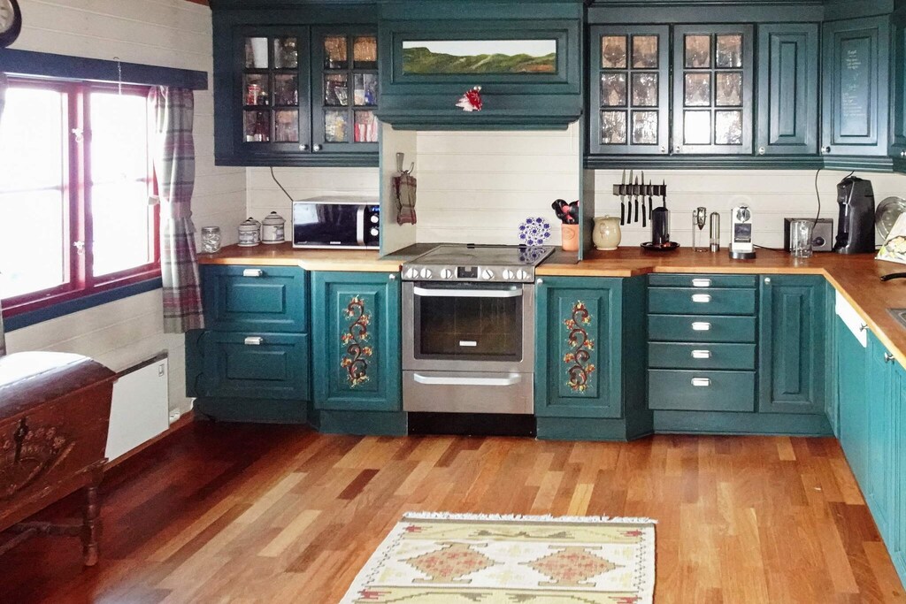 Gemütlich und praktisch eingerichtetes Ferienhaus im typischen Hüttenstil mit viel Holz und Kamin. Liegt im Hüttengelände von Fjellandsbyen bei Skeikampen und bietet guten Platz für bis zu 10 Gäste. Sauna und zwei Bäder im Haus. Unmittelbare Nähe zu tollen Aktivitäten, im Winter wie im Sommer. Im Erdgeschoss des Ferienhauses finden Sie einen gefliesten Flur mit Garderobe mit Schiebetüren. Bad mit WC, Dusche und Waschmaschine. Zweites Bad mit Dusche und Zugang zur elektrisch betriebenen Sauna. Angenehme Fußbodenheizung in beiden Bädern. Küche mit offener Verbindung zur Essecke. Gemütliche Sitzbank und Holzofen in der Küche. Essecke mit Platz für 10 Gäste. Zwei Stufen weiter unten liegt das Kaminzimmer mit großem, offenem Kamin, Sitzecke und Fernseher. Außerdem Schlafzimmer mit Doppelbett. Kurze Treppe hinauf in die obere Etage mit zwei Schlafzimmern mit insgesamt acht Schlafplätzen, verteilt auf vier Doppelbetten. Kurze Leiter hinauf zum Hems mit zwei Sofas. Es gibt zwei Smart-TVs im Haus; eines im Kaminzimmer, das zweite oben auf dem Hems. Auf beiden kann man eigene Anbieter streamen. Zudem Abo von Altibox vorhanden. Große, sonnige Terrasse mit Feuerstelle im Außenbereich, ideal für sonnige Tage und lange Sommerabende. Die Terrasse ist nach Süden ausgerichtet und erstreckt sich um die Ecke des Hauses herum, sodass man fast den ganzen Tag über gute, sonnige Bedingungen vorfindet. Sie wohnen hier in unmittelbarer Nähe von Langlaufloipen und alpinen Skigebieten. Skeikampen ist ein schneesicheres Reiseziel, wo die Wintersaison normalerweise lange dauert. In fußläufiger Entfernung haben Sie Zugang zu rund 600 km gespurte Langlaufloipen und Touren, die für Jung und Alt geeignet sind. In unmittelbarer Nähe befindet sich auch das Alpinzentrum Skeikampen mit 9 Liften und insgesamt 21 Abfahrten auf insgesamt 21 Kilometern Pistennetz. Das Zentrum verfügt über ein eigenes Kinderland mit Liften und Pisten für die Kleinen sowie einen modernen und neu gestalteten Funpark. Für Sommergäste lockt Skeikampen mit dem höchstgelegenen Golfplatz der nordischen Region sowie Radfahren, Schwimmen, Reiten, Angeln, Paddeln und Stangenjagd in unmittelbarer Nähe des Hauses. Der Besitzer des Ferienhauses stellt zwei Fahrräder zur Verfügung (ohne Gewähr). Mehrere Restaurants, Cafés und Kneipen in der Nähe. Der Stromverbrauch während durch Ablesen des Stromzählers zu Beginn und am Ende des Aufenthalts abgelesen und bei der Abreise abgerechnet. Der Verbrauch von Brennholzsäcken wird auf die gleiche Weise abgerechnet.