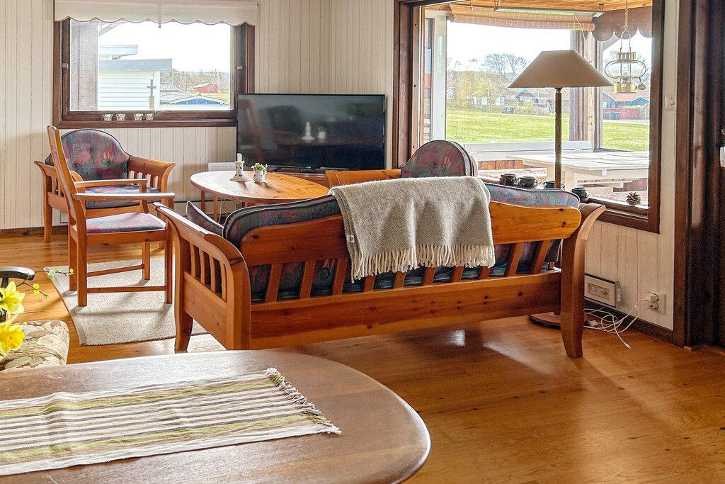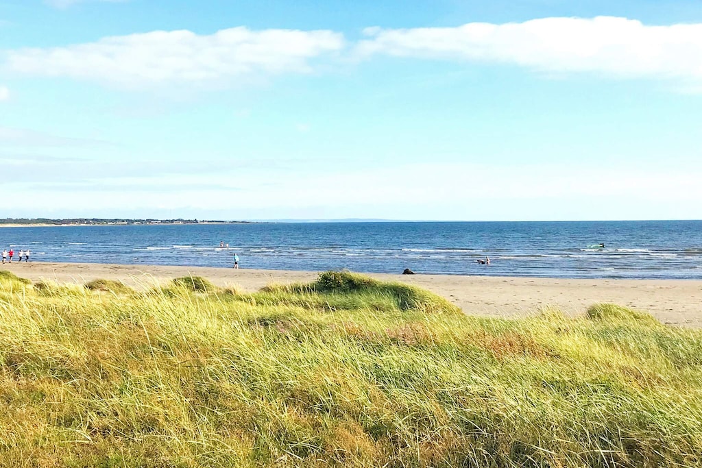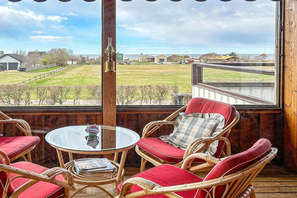 With an outstanding view of nature and the sea, this cottage is an idyllic retreat where you can experience the tranquility and beauty of coastal life. The house is located in the popular seaside resort of Skummeslövstrand with a mile-long beach that awaits. Inside the cabin is a well-equipped kitchen with everything you need to cook simple meals or just enjoy a cup of coffee. In the living room, a TV with a wide range of channels awaits for the evening's entertainment. The three cozy bedrooms offer plenty of space for the whole family or friends, with two of them equipped with two single beds each and the third bedroom offering a comfortable double bed and a private bathroom with WC and wash basin. There is also a bathroom by the entrance with wc, wash basin and shower. Washing machine is in the basement for extra comfort. Outdoors, there are several options for those who love to be outside. Lovely lawn for playing and sunbathing. There is a balcony on the front and back of the house as well as a large, inviting conservatory at the front where you can spend time with friends and family well into the evening. Skummelövstrand is a popular beach resort and for those who are tired of the sea, it is a walking distance to the beach about 1.5 km away. Here is a 25-metre heated seawater pool. By the pool there is also a kiosk with simple snacks. If you want to make a day trip, visit Svarvareskogen, a green oasis with a large number of hiking trails and two exercise loops. For those who like tennis, go to Skummeslövs Tennisklubb, one of Sweden's largest tennis facilities. If you like adventure, you should go to Kungsbygget Adventure Park, they offer active experiences with summer tobogganing, zipline, climbing, cycling and bungy rocket. There is a lot to do and see here. The house is very well planned and well thought out and makes for a perfect holiday. Welcome!