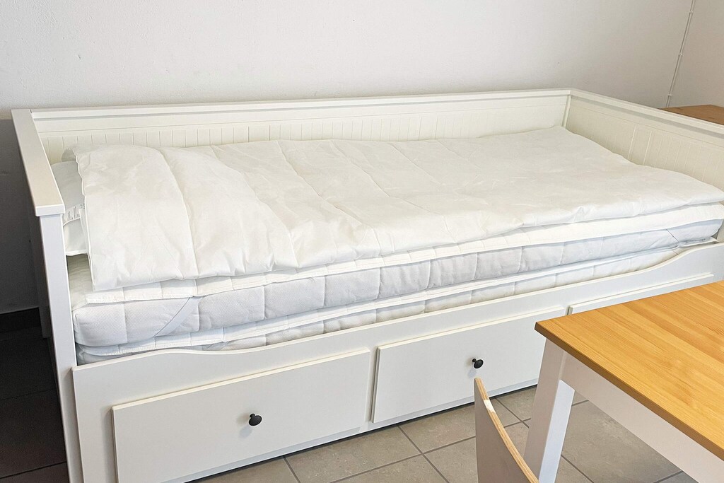 In zentraler Lage, mitten in Sölvesborg, befindet sich diese Ferienwohnung, die im Untergeschoss im Wohnhaus des Eigentümers liegt. Hier haben Sie in der heißesten Zeit des Jahres eine kühle Unterkunft zur Verfügung. Durch die Nähe zur Natur, zum Meer und zum Stadtleben in dieser Kleinstadtidylle, die Sölvesborg ausmacht, haben Sie alles um die Ecke. Die Übungswege im nahegelegenen Buchenwald bieten wunderschöne Natur mit Pilzen im Sommer und Herbst. Für die Aktiveren steht hier auch ein großes Outdoor-Fitnessstudio zur Verfügung. In der Umgebung gibt es zudem viele Radwege, die Sie in die wunderschöne Landschaft von Listerlandet führen. Die Unterkunft ist ebenfalls perfekt gelegen, um die Küste von Skåne und Blekinge zu erkunden, die beide über viele wunderschöne weiße Strände verfügen, an denen Sie den Urlaub genießen können. Ein ebenerdiger Gehweg führt Sie vom Parkplatz an der Einfahrt über den Kies vor dem Haus zum Kellereingang. Auf dem Treppenabsatz stehen Gartenmöbel zur Verfügung, die Sie für Mahlzeiten und Entspannung im Freien nutzen können. Das Familienzimmer hinter der Tür verfügt über einen Esstisch mit Stühlen und ein Tagesbett zum Sitzen, das zum Schlafen hergerichtet werden kann. Es gibt Vitrinen mit allem nötigen Geschirr und auch einen Kühl- und Gefrierschrank. Direkt im Inneren finden Sie ein einem schönen Blauton. Vor dem Fernseher befindet sich außerdem ein Schlafsofa für 2 Personen. In einem Durchgang auf der linken Seite befindet sich das WC mit großem Kleiderschrank. Weiter hinten erreichen Sie den Küchenbereich zum Kochen und die Spüle. Dieser Raum ist offen kombiniert mit einer Duschkabine, einer Waschmaschine und einem Trockner, die weiter hinten, abgeschirmt von einem Vorhang, bereitstehen. Sölvesborg hat viele Sehenswürdigkeiten wie z.B. das Schloss mit dem dazugehörigen Park und die Sölvesborg-Brücke mit ihrem 760 m langen Wander- und Radweg, der Sie über das Wasser nach Ljungaviken und zum nahe gelegenen Golfplatz führt. Am Brückenpfeiler befindet sich die Gaststätte Hamnkrogen und nur einen Steinwurf von dort entfernt gibt es im Stadtzentrum mit Einkaufsmöglichkeiten weitere gemütliche Restaurants zur Auswahl. Auf den Campingplätzen Tredenborg und Valjeviken können Sie ein erfrischendes Bad nehmen, Spielgeräte nutzen und eine Runde Minigolf spielen.