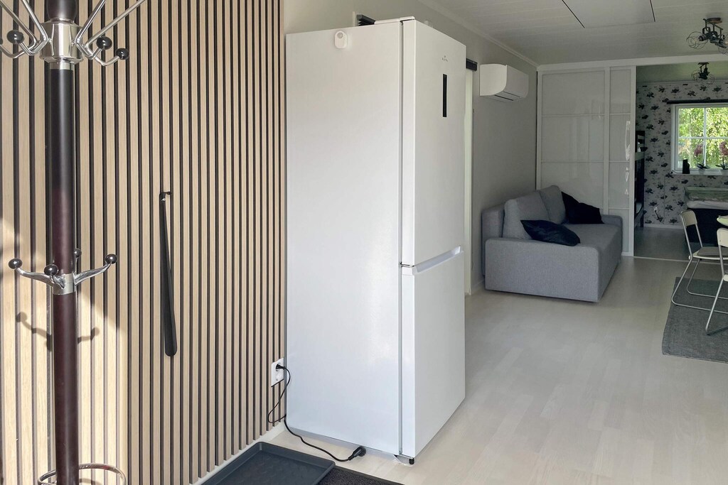 Ganz moderne, geräumige Unterkunft, trotz der relativ kleinen Fläche. Liegt auf dem Privatgrundstück des Eigentümers mit Meerblick im schönen Ferienhausgebiet Norje Boke. Sie wohnen hier unweit der Küste und nur ein paar hundert Meter vom schönen Badeufer des Campingplatzes mit Steg und Aktivitäten für die ganze Familie. Dort gibt es zudem ein Restaurant, Mini-Life und einen Minigolfplatz. Eingangsbereich mit Kleiderbügel und viel Stauraum. Offener Grundriss im Familienzimmer mit Küchenbereich zum Selbstkochen, einem Esstisch zum Versammeln und einem Schlafsofa zum gemütlichen Zusammensitzen vor dem Fernseher. Schiebewände trennen den Schlafbereich mit einem Doppelbett und einem Etagenbett ab. Das Badezimmer mit Dusche, WC und Waschbecken ist ebenfalls gut geplant und geräumig. Vom Wohnzimmer aus gibt es eine Terrassentür auf die Terrasse mit Meerblick. Das Holzdeck, das zusammen mit dem Haus des Eigentümers gebaut wurde, bietet einen schönen Rahmen an zwei Seiten des Hauses und am Eingang. Für diejenigen, die an den heißesten Tagen Sonne und Schatten abwechseln möchten, gibt es vor dem Haus eine weitere Terrasse mit Sonnenschirm. Auf der Rückseite des Hauses mit Blick auf das Meer gibt es außerdem Zugang zu einer großen Rasenfläche, auf der Spiel- und Aktivitätsmöglichkeiten bestehen. Eine kurze Autofahrt bringt Sie zur schönen Küste von Listerlandet mit langen weißen Stränden und kleineren Fischerdörfern, die Sie besuchen können. An mehreren Orten kann der Fang des Tages aus dem Meer in einem der Restaurants genossen oder im Fischgeschäft für eine spätere Mahlzeit gekauft werden. Die Natur lässt sich am besten auf den schönen Wander- und Radwegen in der Umgebung erleben. Nähe zur Kleinstadtidylle von Sölvesborg mit weiteren Restaurants, Einkaufsmöglichkeiten und Attraktionen wie der 760 Meter langen Fußgänger- und Fahrradbrücke, die Sie über Ljungaviken führt. Mit täglichem Bootsverkehr von Nogersund nach Hanö mit seiner eigentümlichen Natur ist ein Besuch empfehlenswert. Weitere Inseln im Blekinge-Archipel können mit dem Schärenverkehr von Karlshamn, Ronneby und Karlskrona aus erreicht werden. Willkommen bei der Entdeckung von Blekinge.