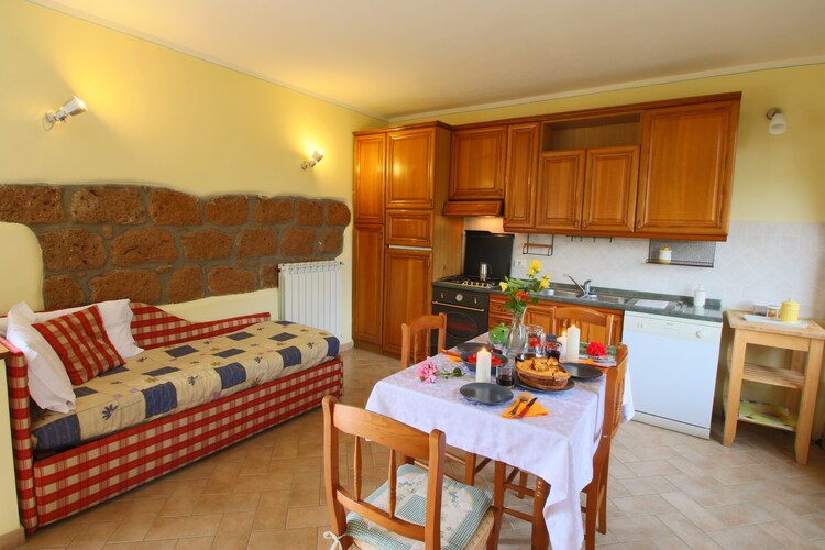 Fantastische ligging van het appartement. Erg vriendelijke eigenaren. Deden er echt alles aan om het ons naar de zin te maken. Dat is hen ook goed gelukt. Een bezoek aan de plaatsen Pitigliano en Sorano zijn een must. Bijzonder is ook dat een kunstenares een atelier in het gebouw heeft.