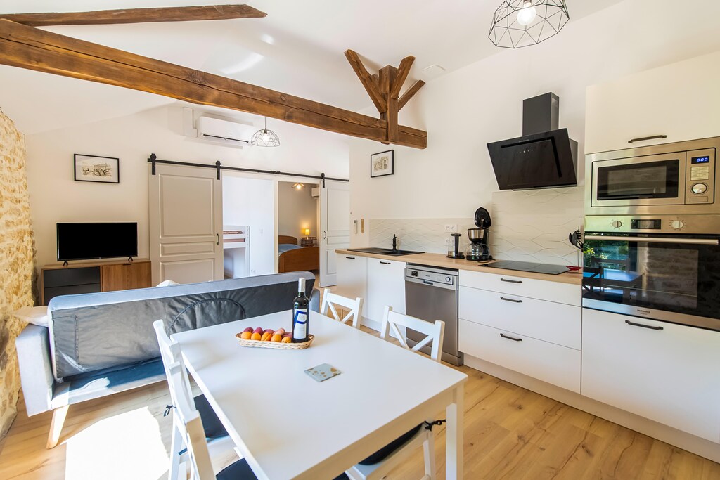 Het vakantiehuis is smaakvol ingericht. U beschikt over een woonkamer met open keuken waar u al uw maaltijden kunt bereiden. Er zijn 2 mooie slaapkamers en een badkamer. Het hele huis is gerenoveerd met een selectie van hoogwaardige materialen. Netflix en Amazon Prime zijn beschikbaar en bieden entertainment voor jong en oud.