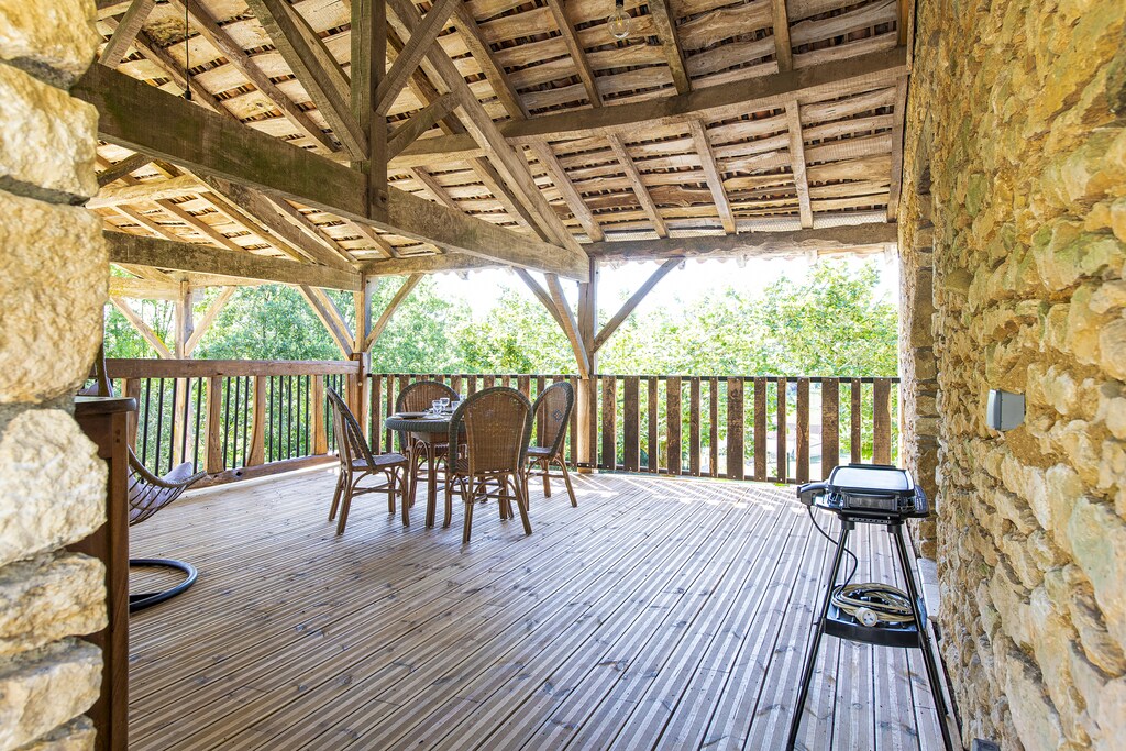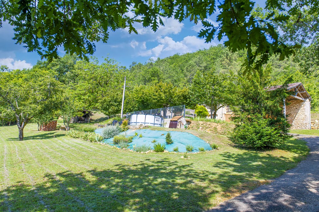 Dit stenen huis in Soturac heeft een elegante inrichting en is geschikt voor een gezin met kinderen (4 personen). Buiten vindt u een overdekt terras met uitzicht op de omgeving en een privéopzetzwembad. De cottage grenst aan een andere accommodatie, door de gunstige inrichting heeft u voldoende privacy. Geniet van een mooie wandeling in de omgeving of bezoek nabijgelegen steden als Condezaygues, Montcabrier en Prayssac. Het gezellige restaurant 'Les Bons Enfants' bevindt zich op 3,6 km van de accommodatie.