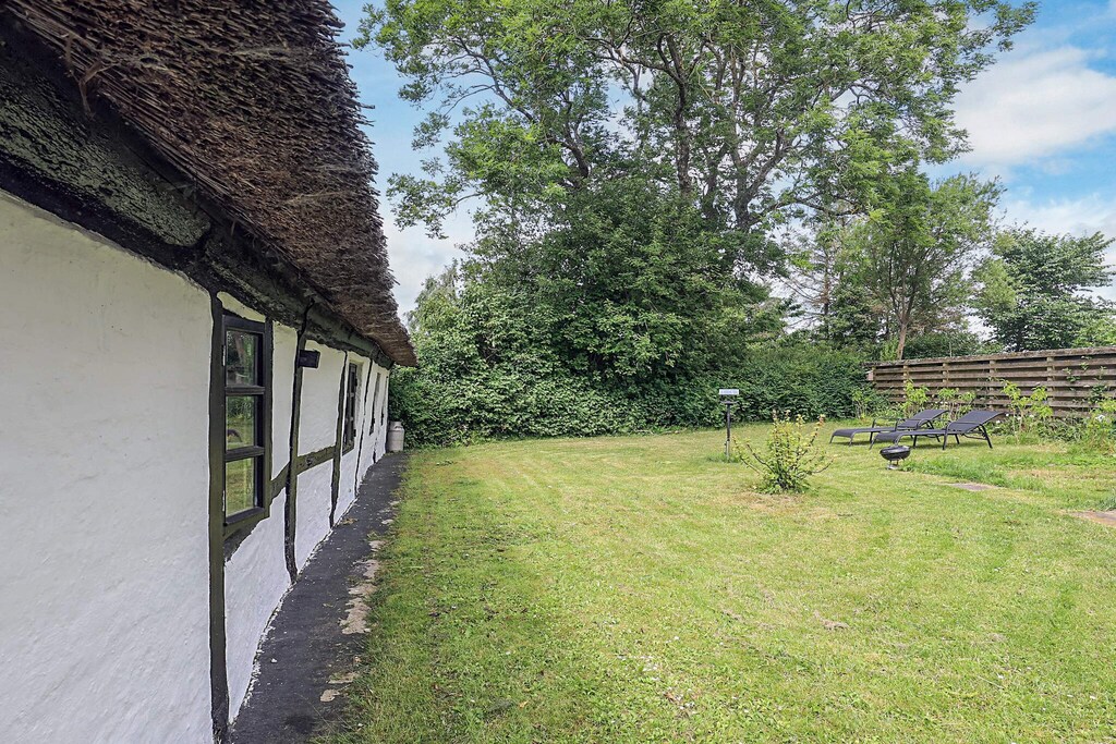 Gemütliches und charmantes kleines Fachwerkhaus in ruhiger Umgebung in Mou. Das Haus ist offen bis zum First und daher hell und luftig, mit Ausnahme der Küche, wo die Deckenhöhe 2 Meter beträgt. Das Wohnzimmer verfügt über ein Schlafsofa und einen Essbereich und ist zur Küche hin offen. Schlafzimmer mit Doppelbett und helles Badezimmer. Das Haus ist gut isoliert und verfügt über eine günstige Fernwärme. Es gibt einen Schuppen mit Gefrierschrank, Waschmaschine und Trockner. Gemütliches Grundstück mit Terrasse und Garten zum Entspannen.