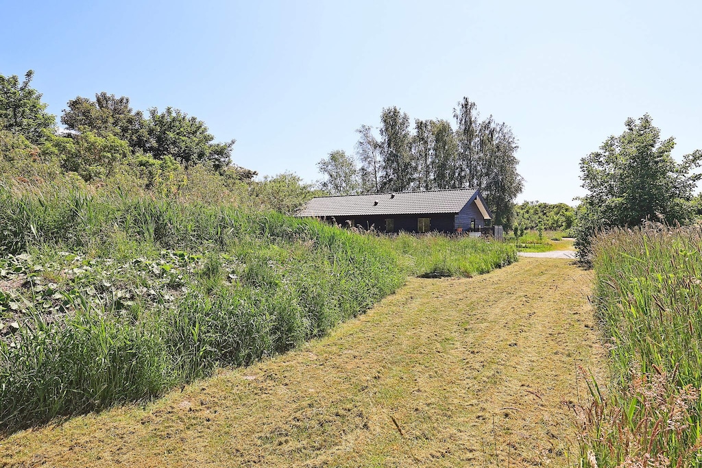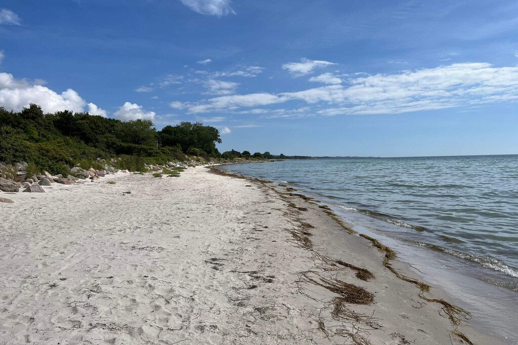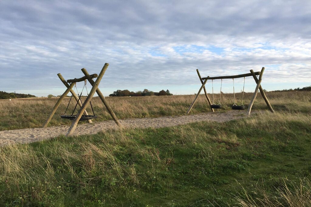 Tilgang til legetøj for det mindste barn, 2 badeværelser, opdeling med 2 soveafdelinger, legeområde udenfor huset, god placering i forhold til strand