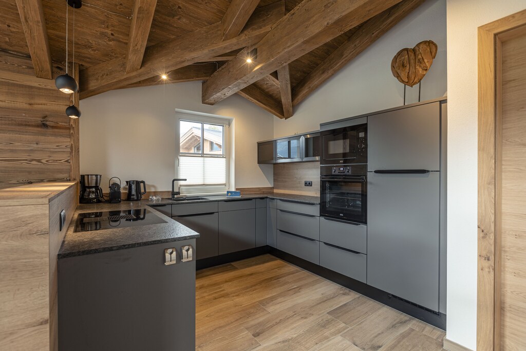 Waterkoker, Broodrooster, Fornuis (4 kookplaten), Koffiezetapparaat, Magnetron, Afwasmachine, Koel-/vriescombinatie