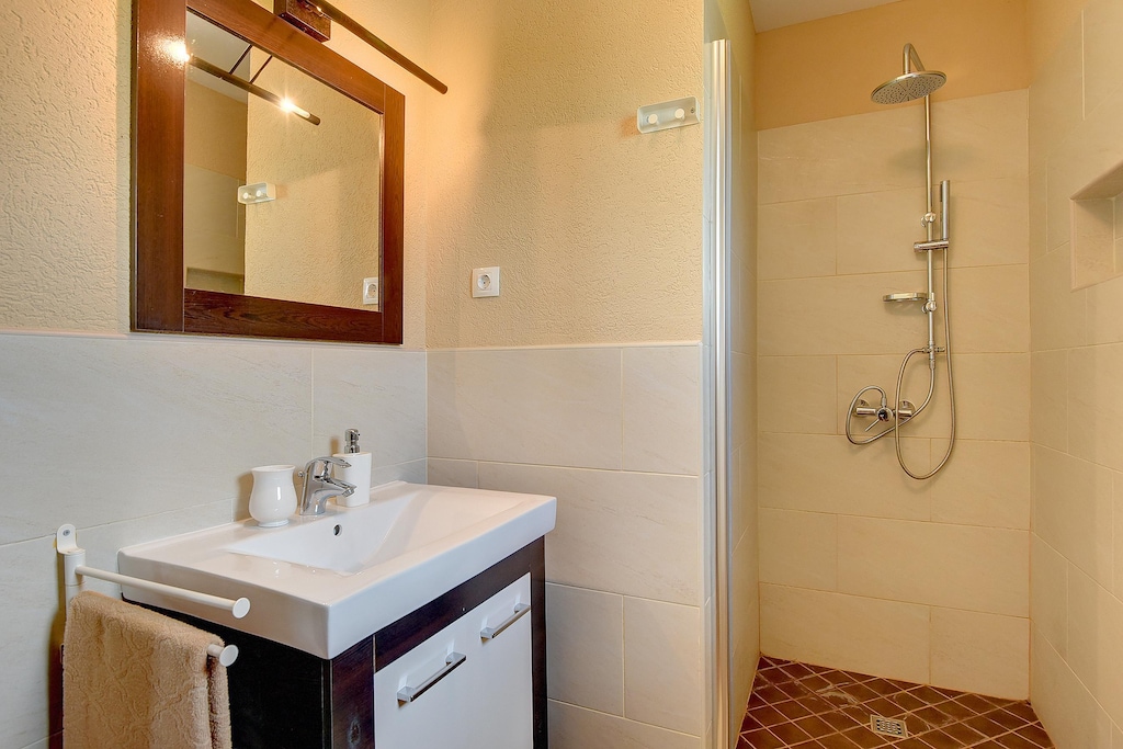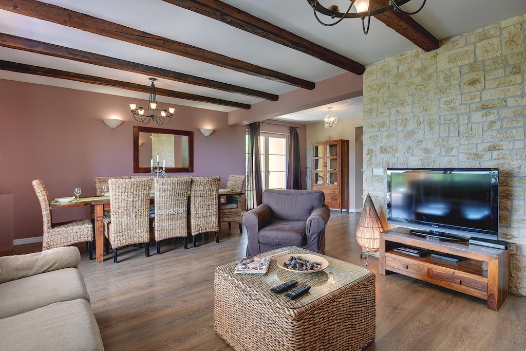 Villa is gelegen in het dorp Rakalj, op slechts 2 kilometer van de prachtige stranden, en is de perfecte combinatie van glamour en comfort. Het stijlvolle ontwerp en de complete uitrusting zullen de kwaliteit van uw vakantie aanvullen. Midden in een mooi onderhouden tuin ligt een zwembad, waar u heerlijk kunt ontspannen in het bubbelbad of op de ligstoelen op het zonneterras. Er is ook een overdekt terras met grill, tafel en stoelen waar u kunt genieten van heerlijke barbecuemaaltijden. Direct naast het zwembad vindt u een biljartkamer en een fitnessruimte, evenals een sauna met douche en een apart toilet.