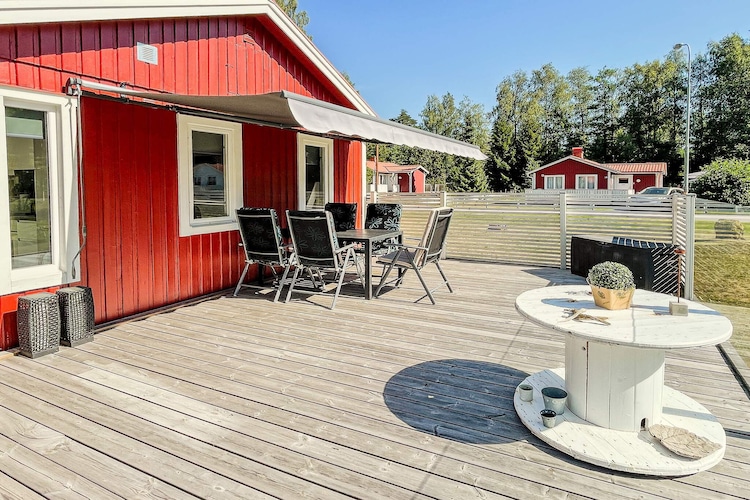 Traditionelles Ferienhäuschen im Ferienhausgebiet von Virserum, näher bezeichnet bei Dackestupet. Perfekter Ort für die ganze Familie mit schönen Badeufern am nahen See und einer Vielzahl von Aktivitäten in der Umgebung. Die Natur und der Virserum-See sind außergewöhnlich schön und bieten wunderbare Ausblicke! Dackestupet ist eine 500 m entfernte Freizeitgelände für Sommer- und Winteraktivitäten. Im Sommer ist dies der richtige Ort für Radsportbegeisterte, denn es gibt Mountainbike-Strecken und einen Übungsbereich. Es gibt auch Radwege, die Sie an historischen Stätten und hügeligen Landschaften im småländischen Hochland vorbeiführen. Es gibt auch schöne Strecken zum Wandern und Trailrunning. Oben auf dem Aussichtspunkt Dackestupet können Sie die wunderschöne Aussicht auf den See und Virserum genießen. Packen Sie Ihre Badesachen ein und genießen Sie zum Abschluss ein erfrischendes Bad. Im Winter können Sie sowohl Skifahren als auch Langlaufen genießen. Es gibt auch einen Skiverleih und das Café Toppstugan. Grillen können Sie in der Grillhütte Dackegrottan. Das Ferienhäuschen bietet eine große, schöne Terrasse mit Gartenmöbeln, die zum Entspannen einlädt. Außerdem helles Wohnzimmer mit Essbereich und Sitzecke. Die Küche wurde kürzlich renoviert und verläuft entlang einer Wand, mit einer großen Terrassentür, die hinaus auf die Terrasse an der Rückseite führt. Sie schlafen in zwei hellen Schlafzimmern; eines mit einem 140 cm breiten Doppelbett sowie Platz für die Aufbewahrung von Kleidung, während das andere Schlafzimmer über ein Etagenbett mit 130 cm breiter Liegefläche in der unteren Koje und 80 cm Breite darüber verfügt. Das Sofa im Wohnzimmer kann zudem als doppelte Schlafcouch genutzt werden. Das Grundstück draußen lädt zu Spiel und Spaß an der frischen Luft ein. Außerdem gibt es auf dem Gelände einen Bolzplatz. In der Umgebung gibt es schöne Strände. Der nächstgelegene Strand ist mit seinem flachen Sandstrand ideal für jüngere Kinder. Ungewöhnlich für einen See, gibt es auch schöne Klippen, die ein Gefühl für den Archipel vermitteln. Viele Buchten stehen denjenigen zur Verfügung, die über ein eigenes SUP, Kanu oder Kajak verfügen. Der größere Strand mit Steg ist in der Regel für ältere Kinder und Erwachsene geeignet. Rund um den See können Sie einen erfrischenden Spaziergang oder Lauf unternehmen. Die Entfernung beträgt etwa 7 Kilometer und bietet wunderschöne Ausblicke auf die Umgebung. Lebensmittelgeschäfte, Pizzerien und Restaurants finden Sie im Zentrum von Virserum. Es gibt auch ein Museum, eine Kunstgalerie und einen Kräutergarten. Nicht weit von Virserum entfernt gibt es Astrid Lindgrens Welt, den Elchpark Målilla, die schwedische Zipline, das Bergwerk Kleva und Bahnradfahren auf der Schmalspurbahn. Der Fluss Emån ist für seine hervorragenden Angelmöglichkeiten bekannt und auch der Virserum-See bietet gute Angelmöglichkeiten.