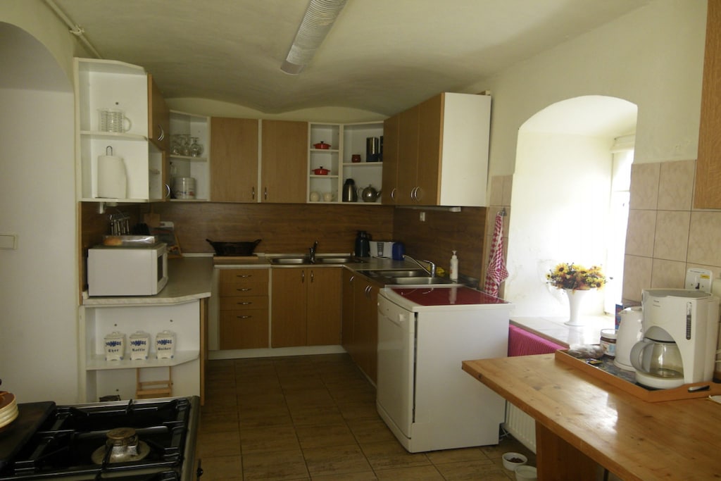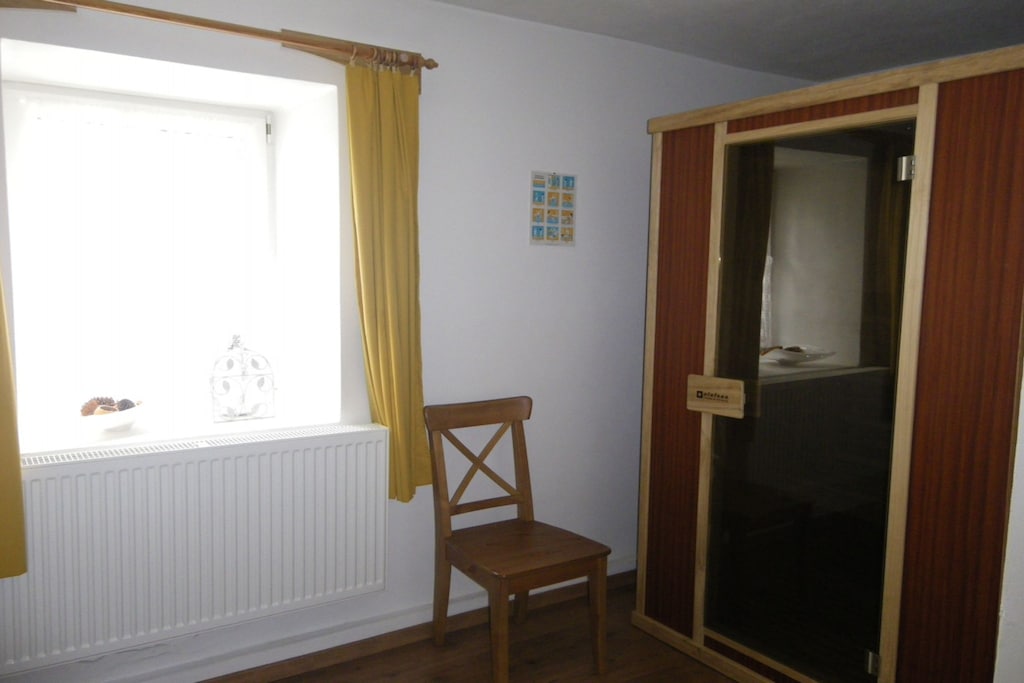 Großzügiges Haus mit großem Wohnzimmer und guter Ausstattung. Gemütliche Kachelöfen. Trampolin und Tischfußball sind ein Hit für kleine und große Kinder. Sehr ruhige Lage mit schöner Natur in direkter Umgebung. Schöner Fußweg zum Bahnhof ca. 10 Min. Rasche Hilfe bei Heizungsausfall. Hohe Heizkosten (Gas) haben den zunächst günstigen Preis deutlich erhöht. Durch die dicken Mauern anfangs etwas kalt in den Schlafzimmern. Sauna ging nicht (störte nicht weiter).