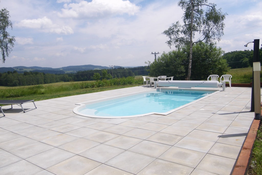 Dicht bij het Lipnomeer in Žlábek, ligt dit vakantiehuis met 5 slaapkamers en 4 douches. Perfect voor een groep van 10 of gezinnen met kinderen, het biedt een infraroodsauna om te ontspannen en een verwarmd privé zwembad om een verfrissende duik te nemen.